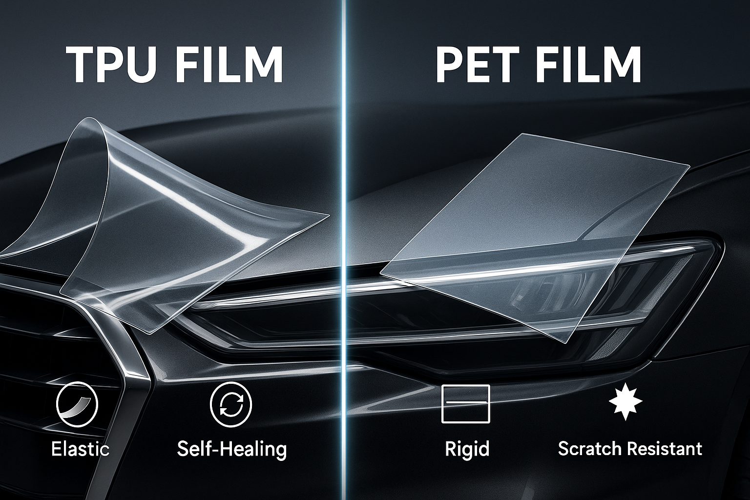 To bridge the price gap, some manufacturers created “TPH” films, which are typically a PVC base with some TPU components or a top coat. While an improvement over pure PVC, the underlying chassis is still prone to the same long-term degradation. It’s a compromise, not an equivalent. Similarly, when looking at a “tpu vs pet film” comparison, it’s clear that PET, a rigid polyester excellent for flat electronics screens, lacks the flexibility required to conform to the compound curves of a vehicle, making it unsuitable for automotive PPF.